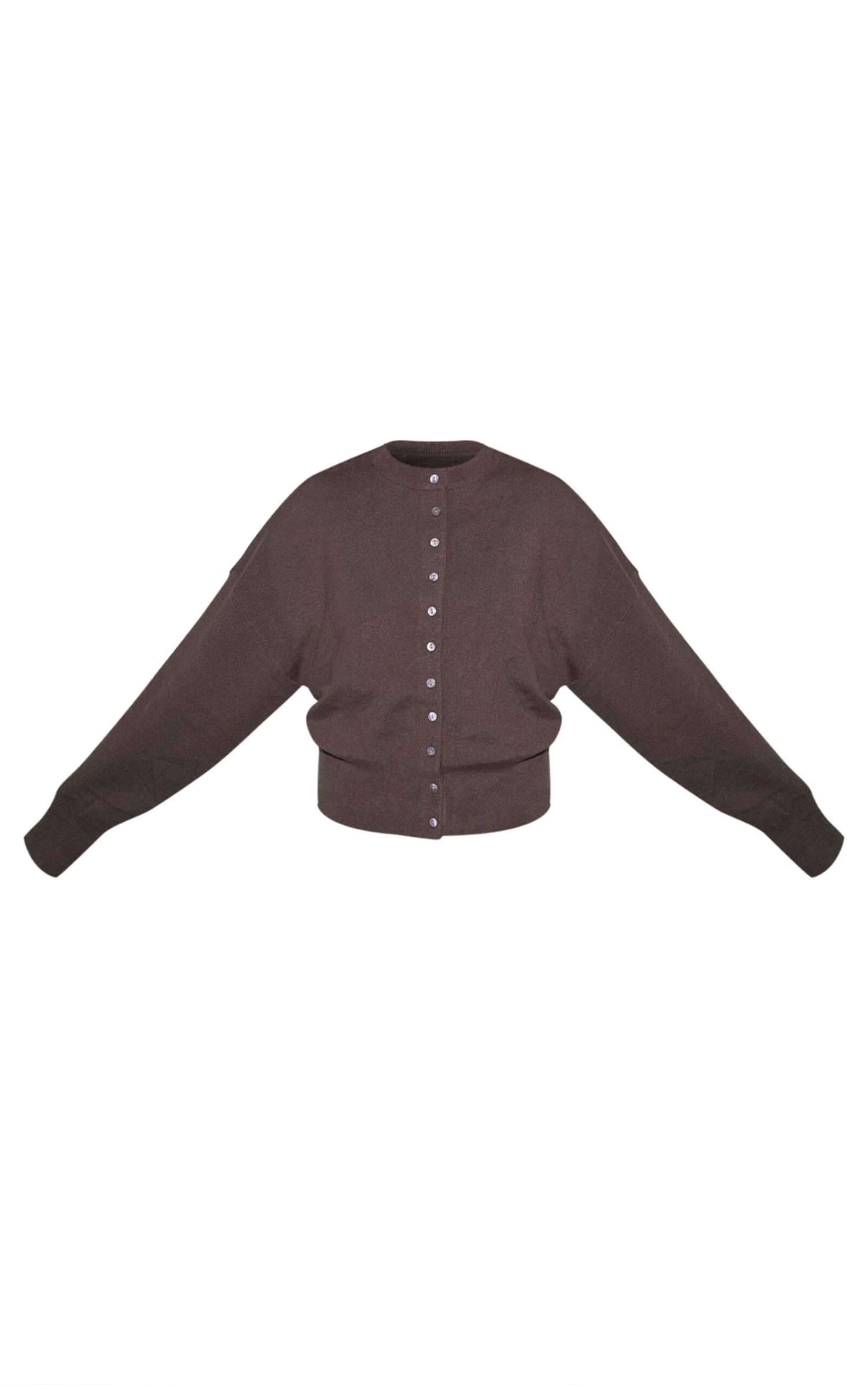 The chocolate brown compact knit cardigan features a sleek, close-knit finish with a fitted cut for easy layering. Its deep chocolate hue makes it a versatile piece for neutral wardrobes. Style with denim for casual days or with a skirt for a polished, feminine edge, then add classic loafers.
