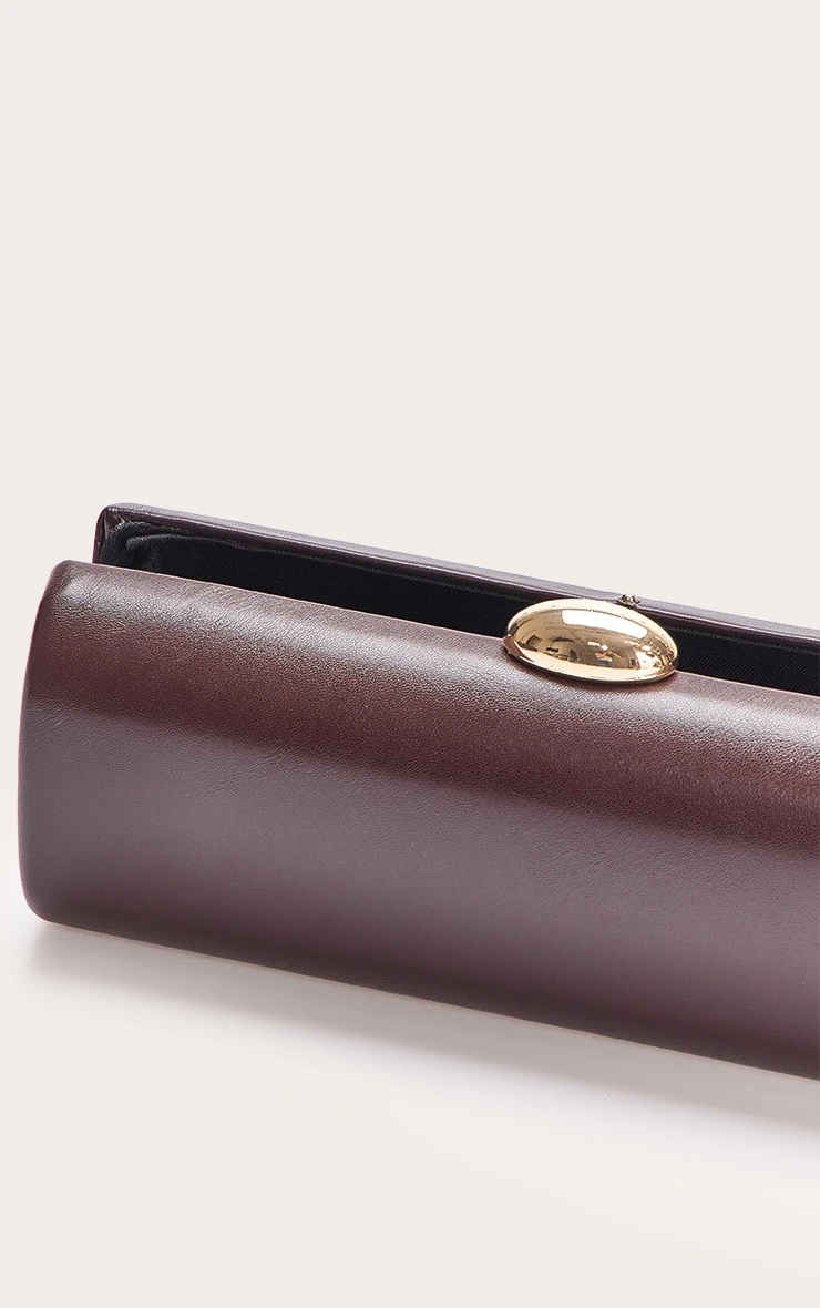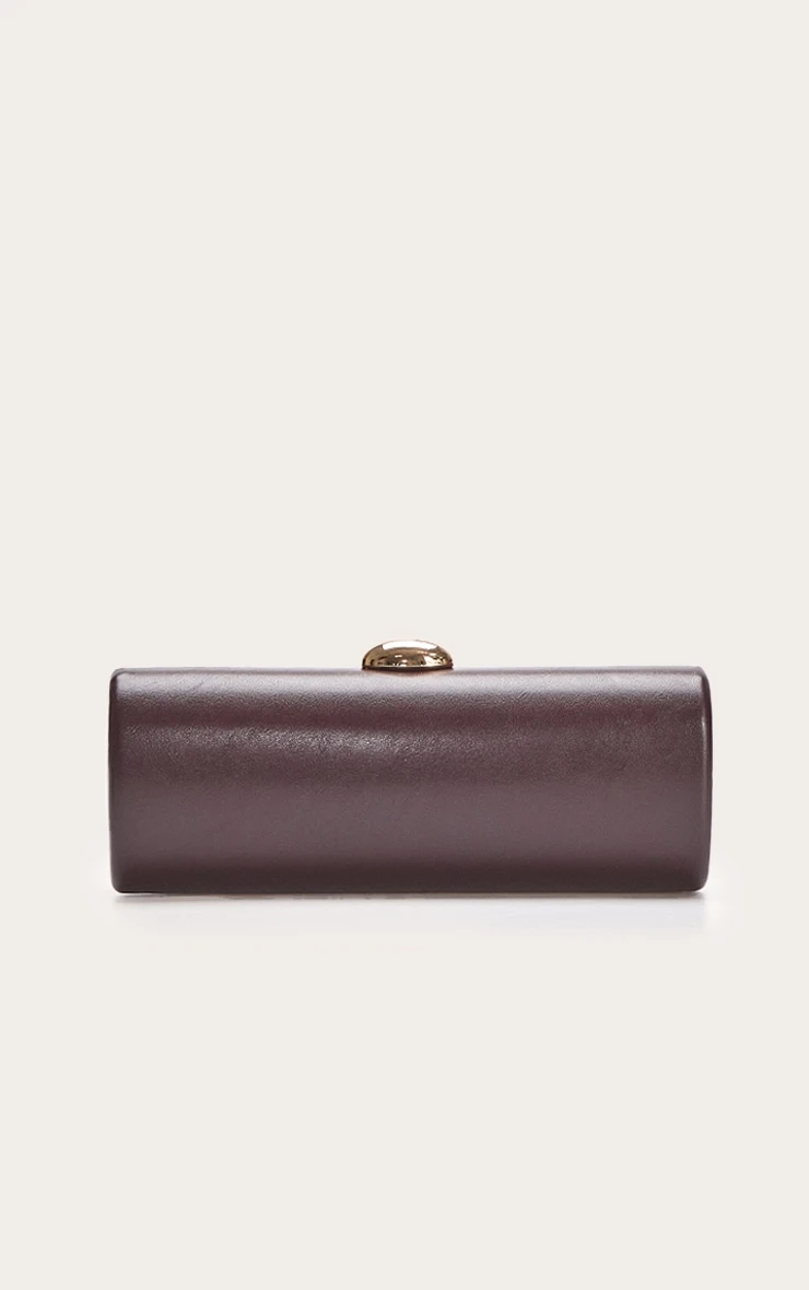 Featuring a deep chocolate brown colorway, this hard-shell clutch boasts a rigid, polished silhouette. The pebble detailing provides a tactile luxury feel, while the secure top clasp closure ensures your essentials are kept safe while maintaining a minimalist aesthetic.