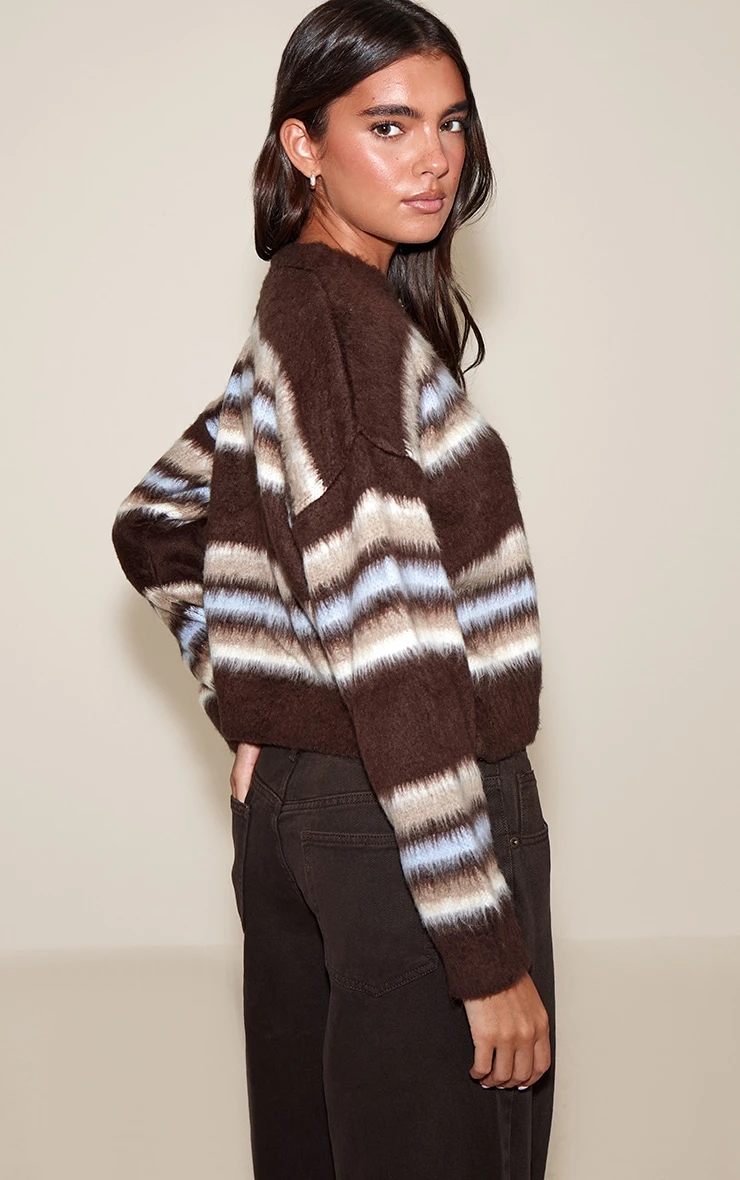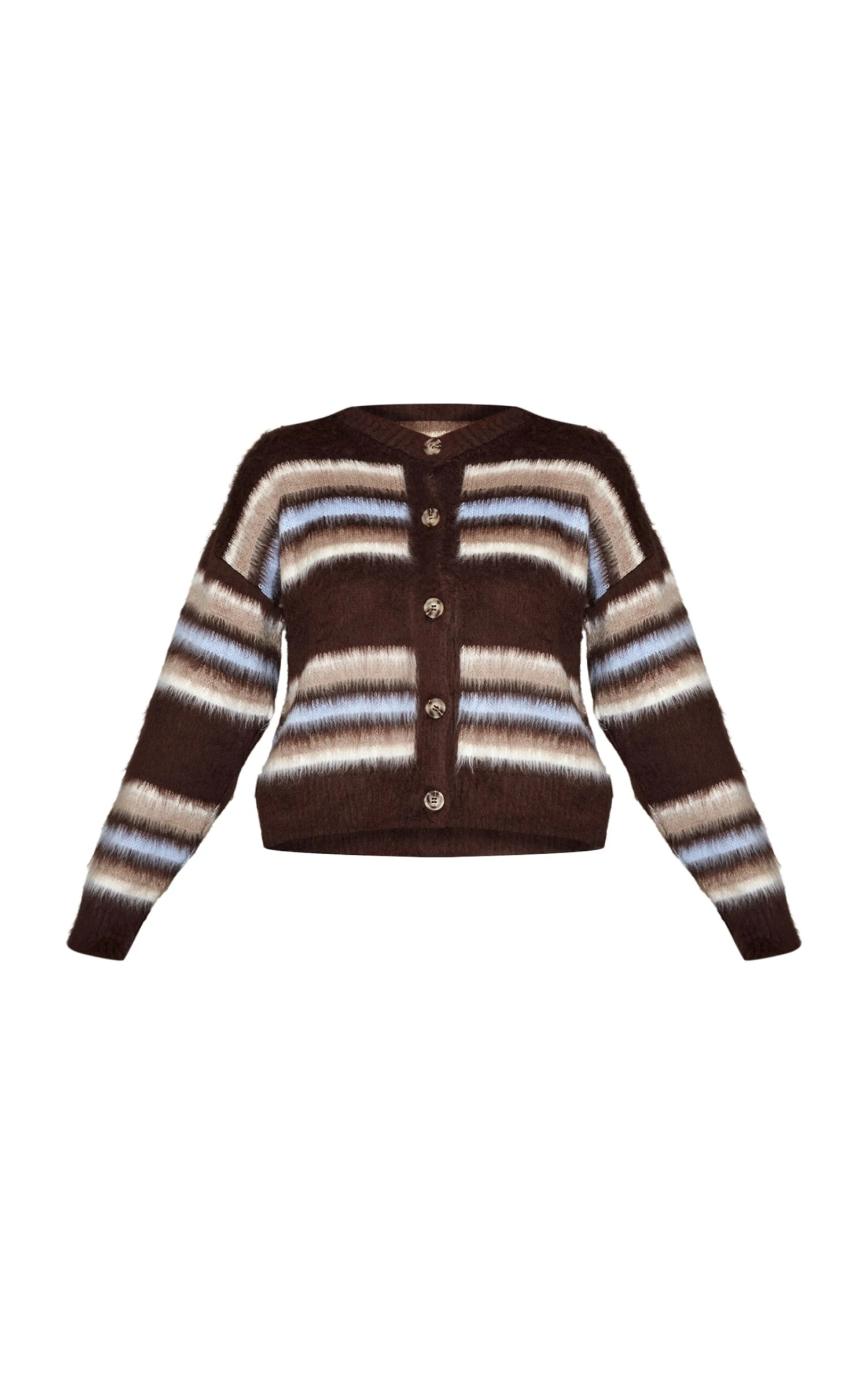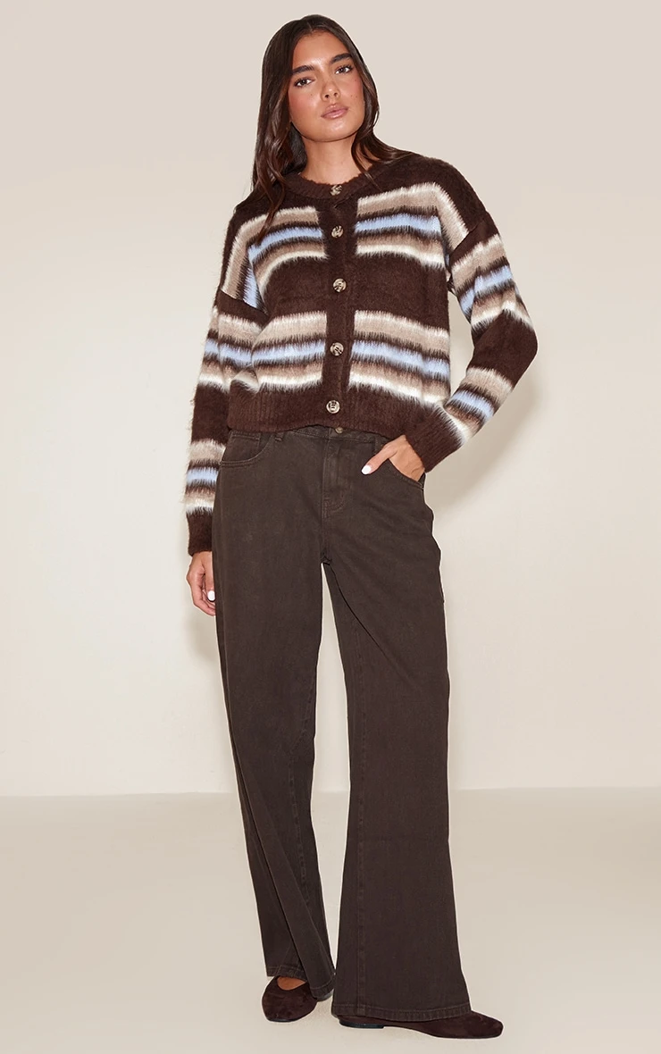 Cozy up in the chocolate striped brushed knit cardigan. The soft brushed knit and relaxed fit make it perfect for layering, while the chocolate stripes add subtle texture. Pair with high-waisted jeans and ankle boots for casual weekends, or layer over a slip dress with heeled boots for effortless chic.