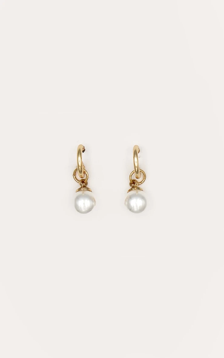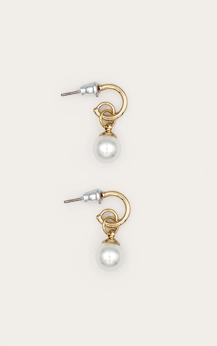 Elevate your everyday edit with these miniature gold-tone hoops, punctuated with delicate freshwater-style pearls. The perfect accent to understated tailoring or adding a touch of refined bohemia to your downtime look. Their compact size makes them ideal for stacking with other earrings, or wearing solo for a subtle statement. Pair them with a crisp white shirt and high-waisted pants from our selection for a considered, contemporary aesthetic.