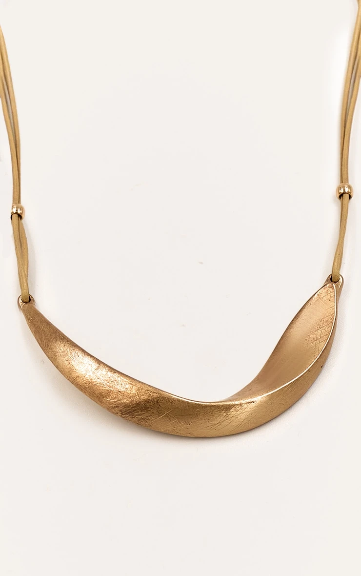 Crafted with a stunning brushed gold finish, this necklace features a smooth curved metal bar that provides a sophisticated matte luster. The design is both contemporary and timeless, ensuring it remains a staple in your jewelry collection.