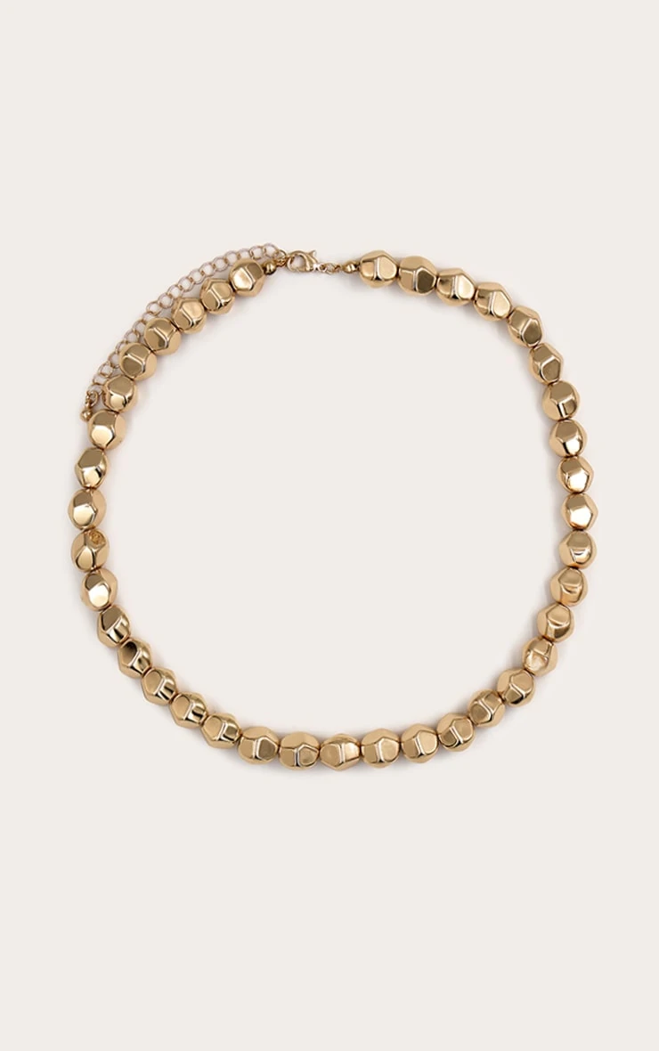 The PrettyLittleThing Gold Textured Bubble Chain Necklace introduces an artful, bold statement piece to your collection. Featuring a distinctive sequence of irregular, polished “bubble” shapes with a unique textured finish, this necklace forms a prominent and organic line around the neckline. Its confident, chunky design ensures immediate visual interest, effortlessly elevating your evening aesthetic or adding a high-fashion edge to a tailored look.
