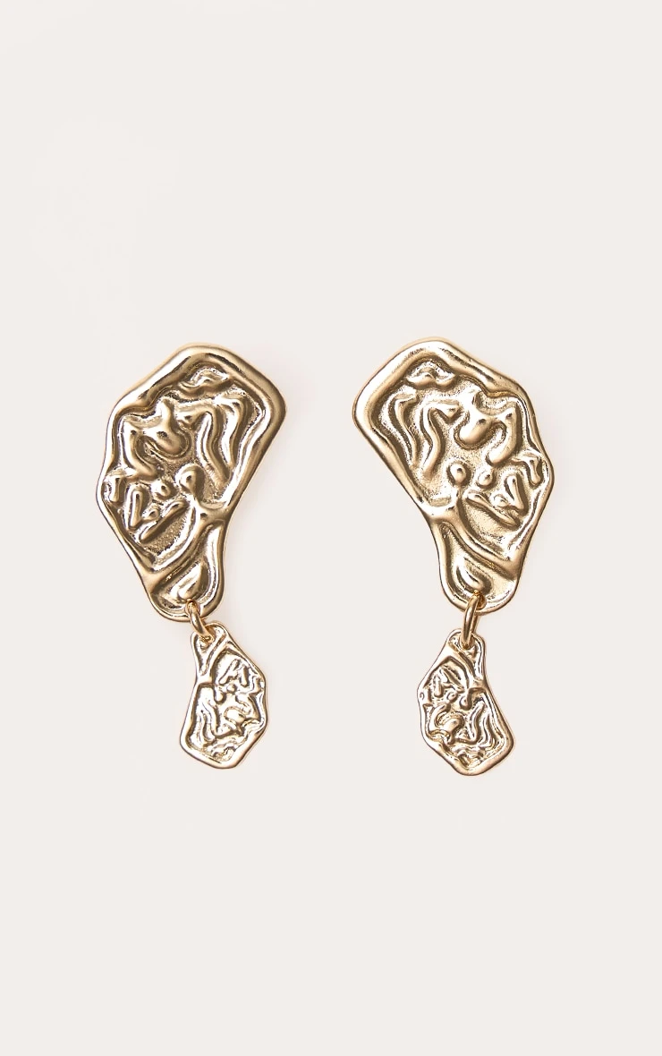 Stay stylish in the gold textured drape detail earrings. Made from a gold material, they feature draped detailing, a textured finish, and a statement design. Style with slip on mule heels and a clutch bag for a fool proof finish.