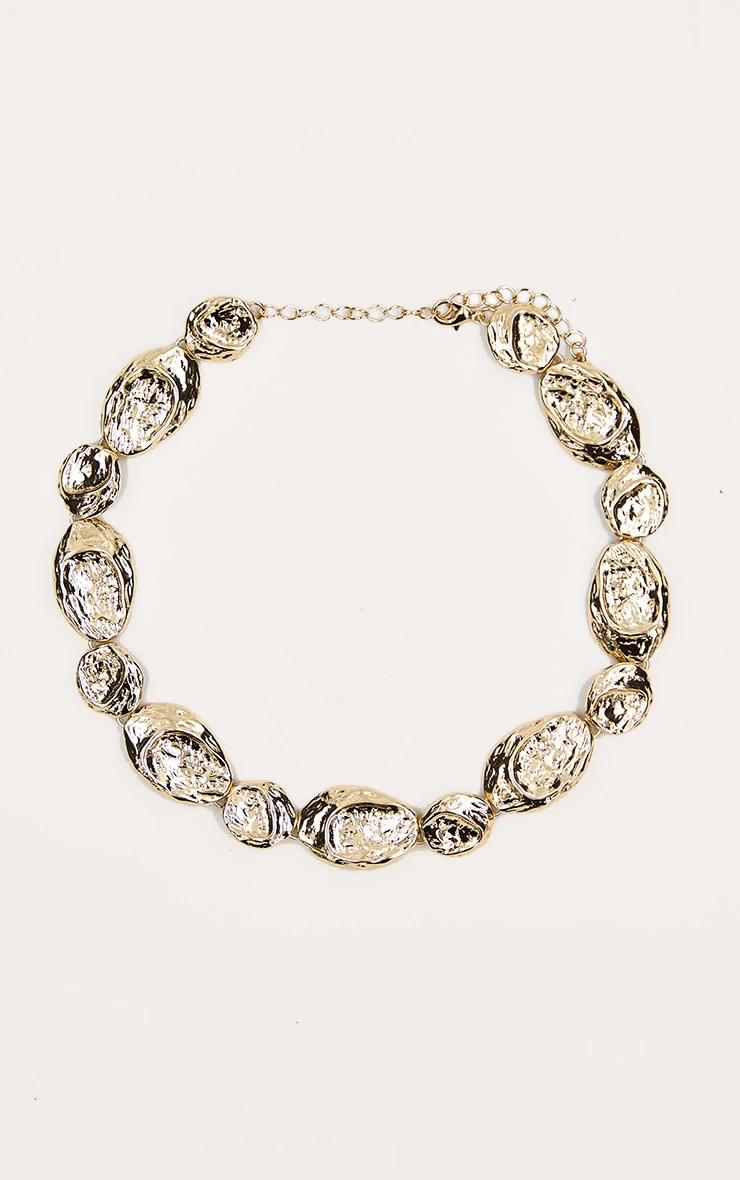 Elevate your daily look with this striking gold textured pebble choker, designed to add a high-fashion metallic edge to any outfit.