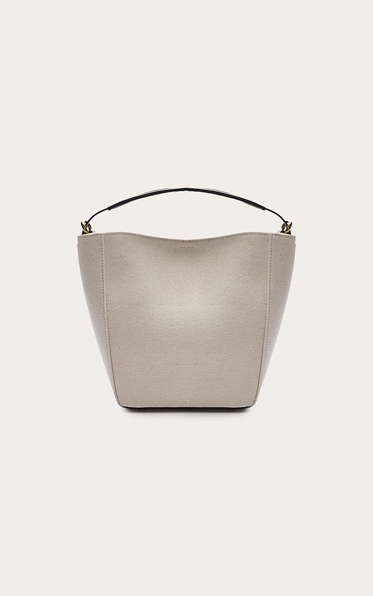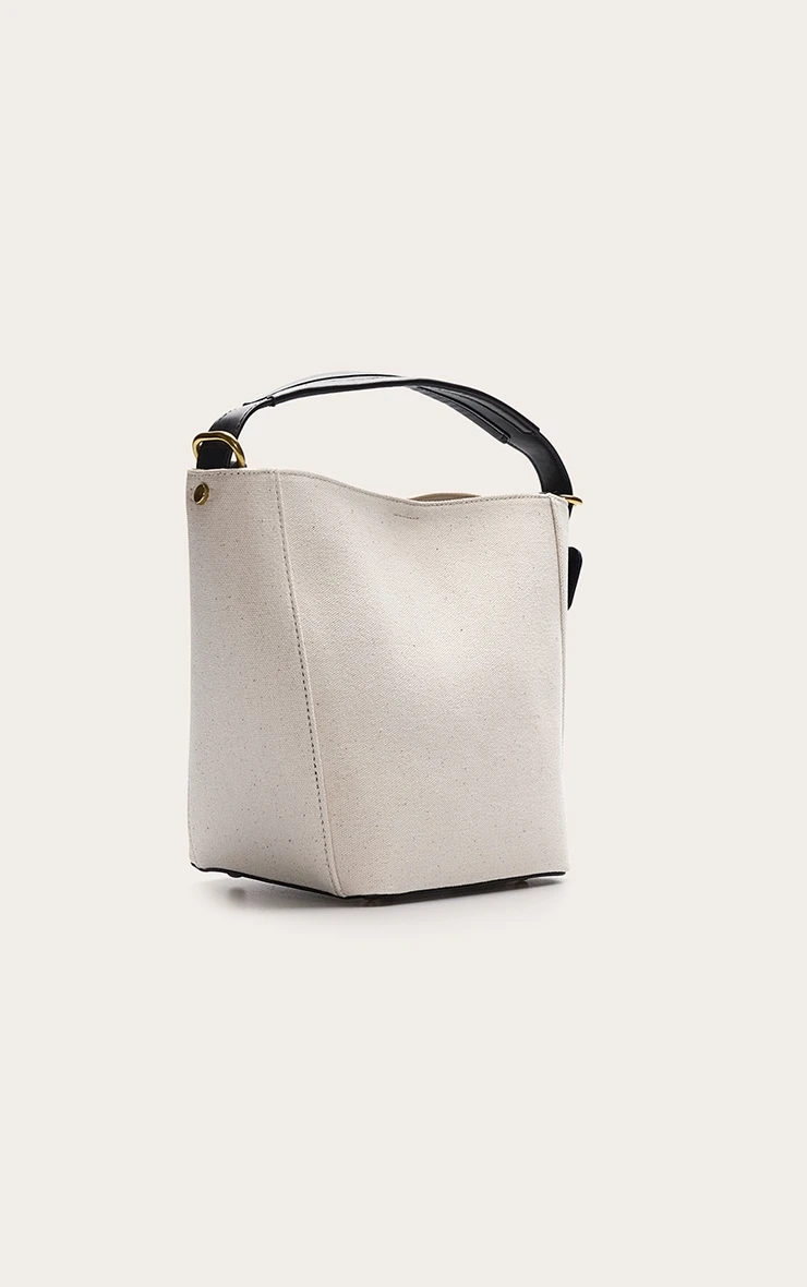 This bag features a sophisticated ‘Natural’ cream-toned PU finish that offers a clean, polished look. The structured bucket silhouette is complemented by a functional buckle strap detail and reinforced contrast handles, ensuring durability while maintaining a sleek, modern aesthetic.