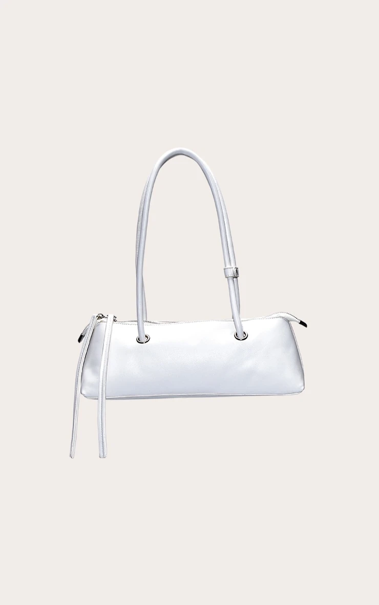 For a standout finish that transitions effortlessly from day to night, opt for this PrettyLittleThing Off White PU Elongated Handle Shoulder Bag. Crafted from a sleek off-white patent PU material, this bag is designed for the fashion-forward individual who loves a clean, contemporary aesthetic.