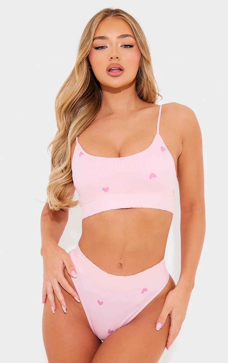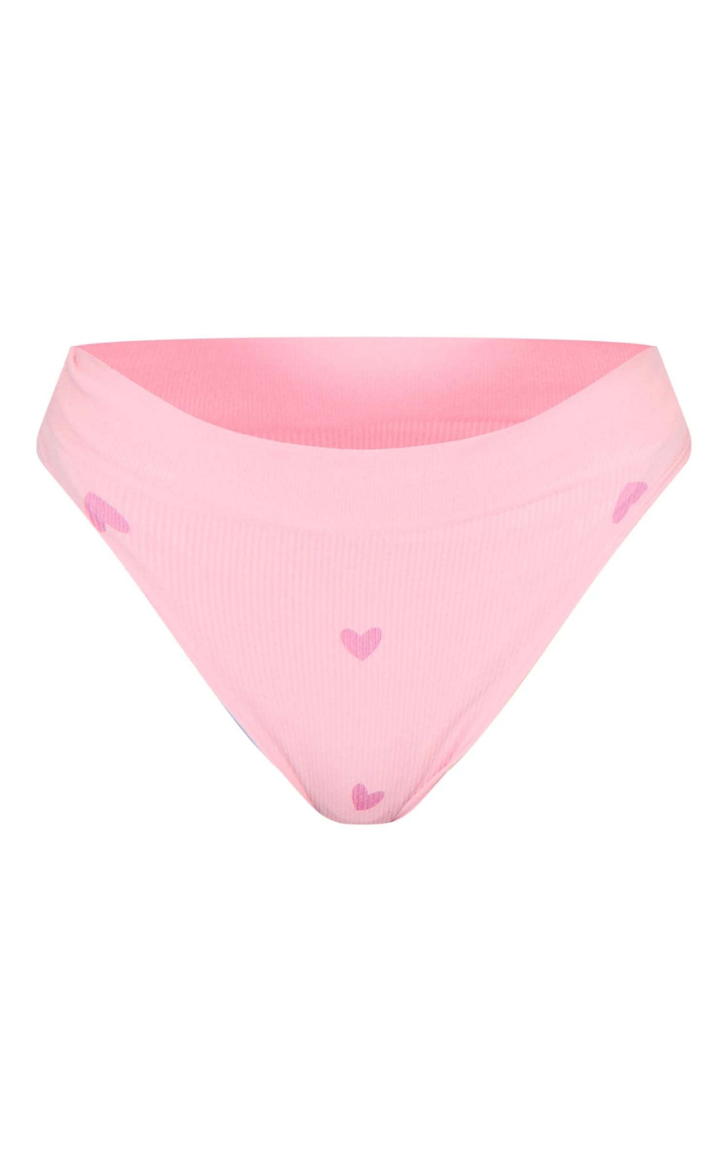 Consider this ribbed thong a foundational layer, imbuing a sense of considered style from the inside out. Crafted in a soft, pink ribbed knit, the subtle heart print offers a touch of whimsy. The streamlined silhouette ensures a smooth profile beneath your chosen separates. For a coordinated look, style with the matching bralette and team with tailored pants for a day-to-night transition.