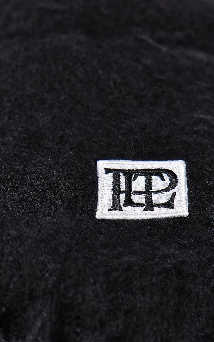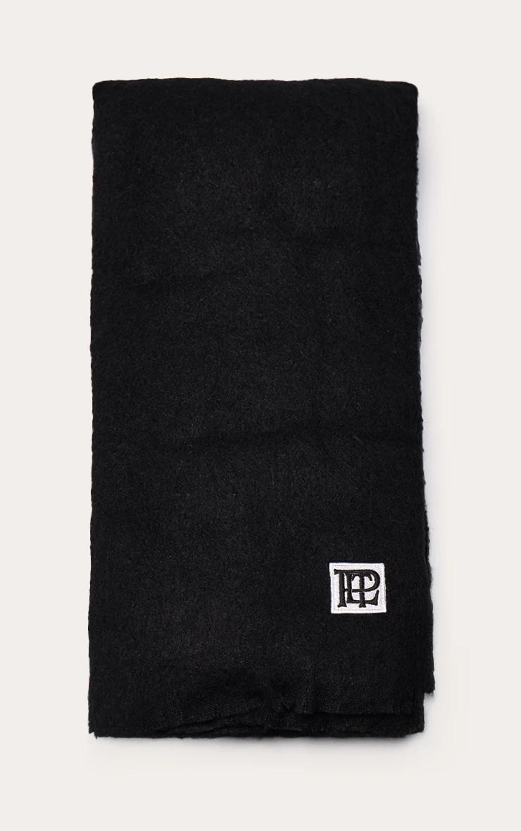Stay sleek with the plt badge black brushed knit scarf. Made from a black brushed knit material, it features a plt badge detail, soft finish, and tassel ends. Pair with your winter coat and gold earrings for an effortlessly polished look.