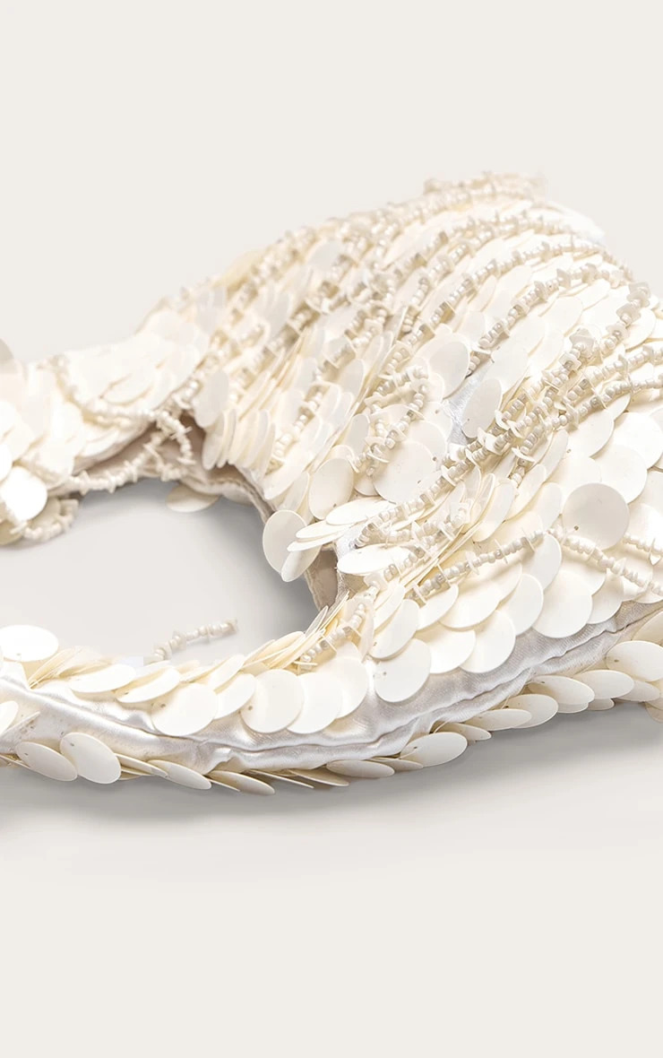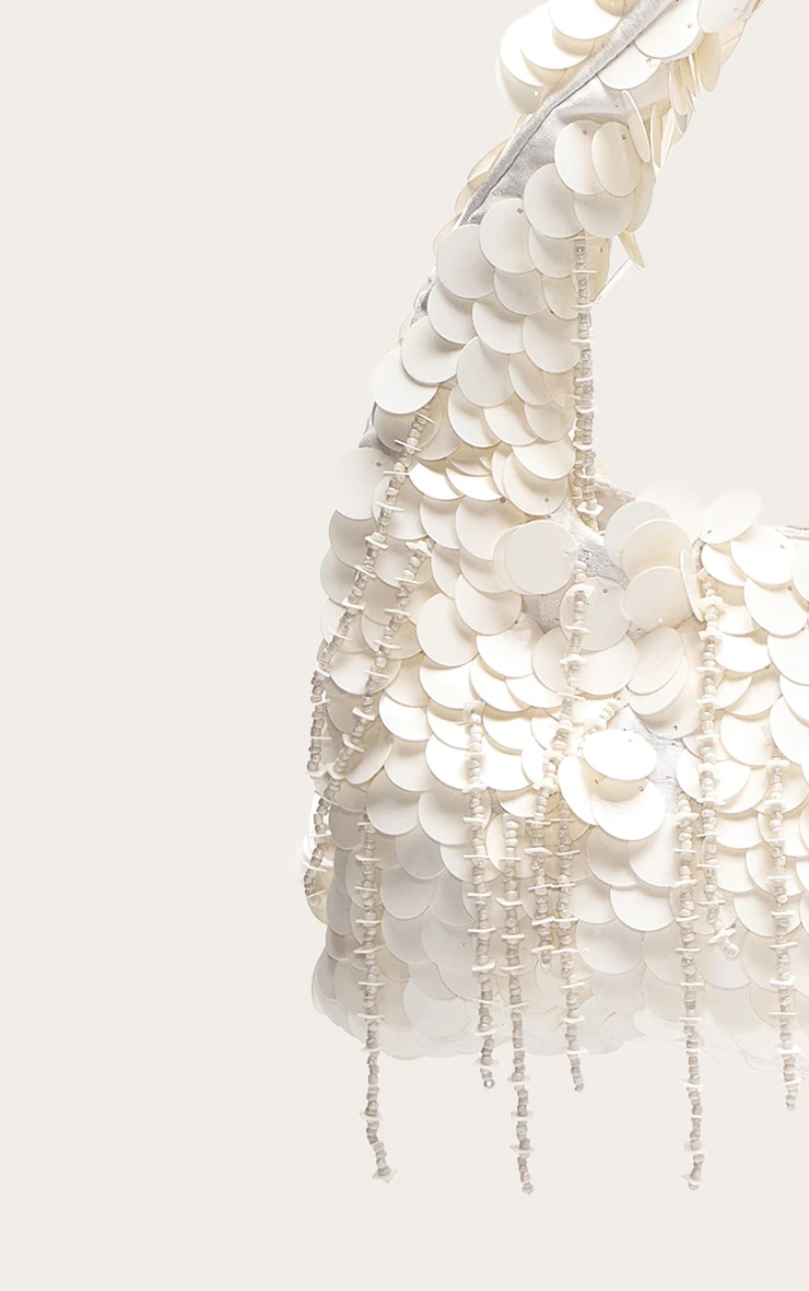 - Premium Detail: All-over white shaggy sequin embellishment.