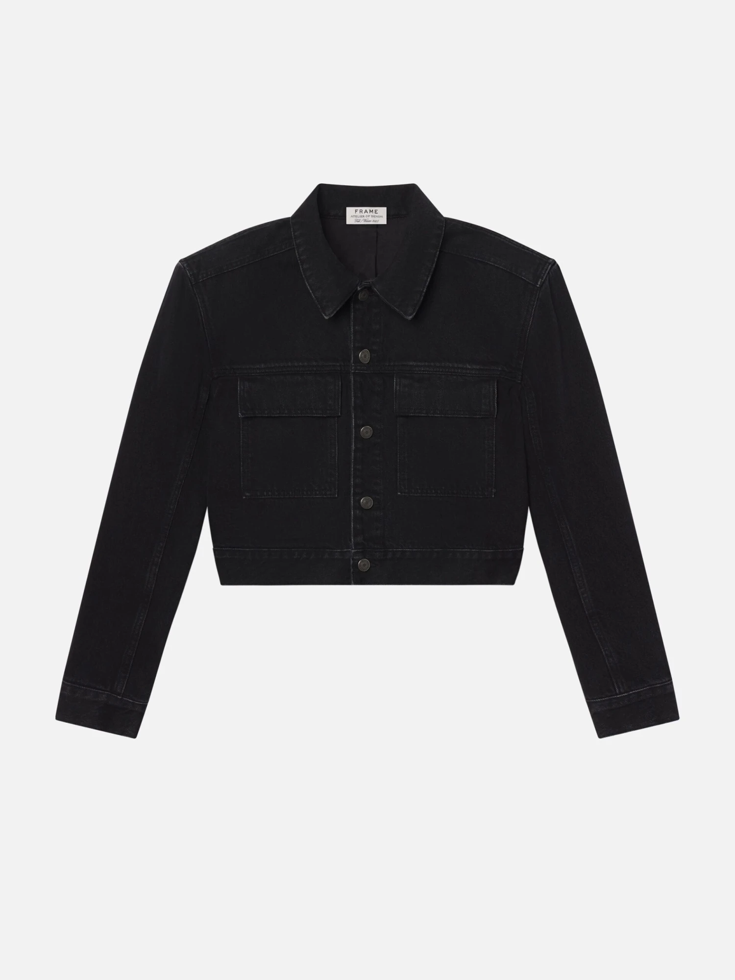 A modern take on a throwback silhouette, this jean jacket features strong shoulder pads for a boldly structured look. Style it with The Atelier Gesture Jean for the ultimate denim uniform.