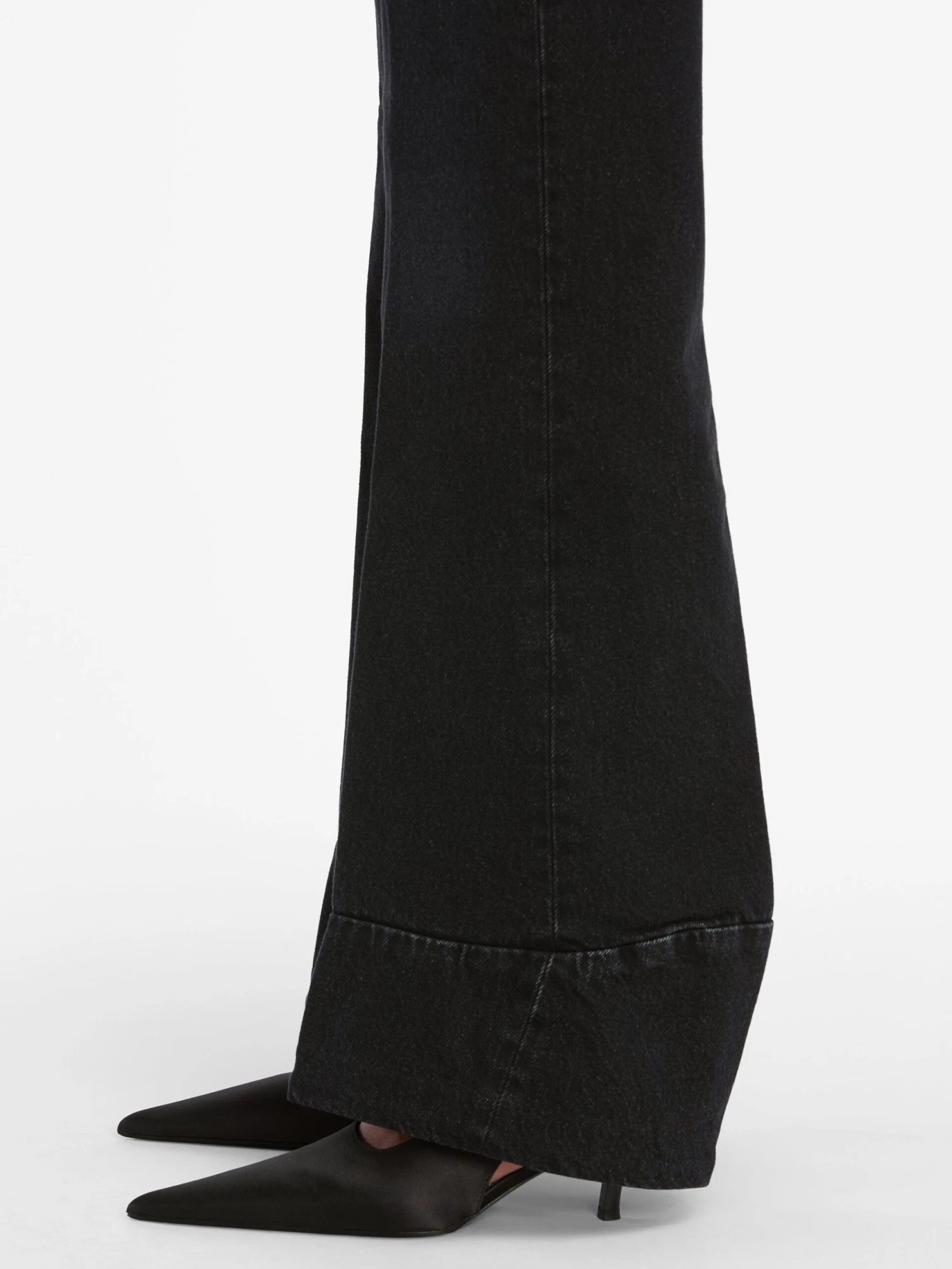 This black non-stretch jean has a bootcut silhouette with a bold seamed cuff. Style it with The Atelier Arch Jacket for the ultimate elevated, innovative denim uniform.Â