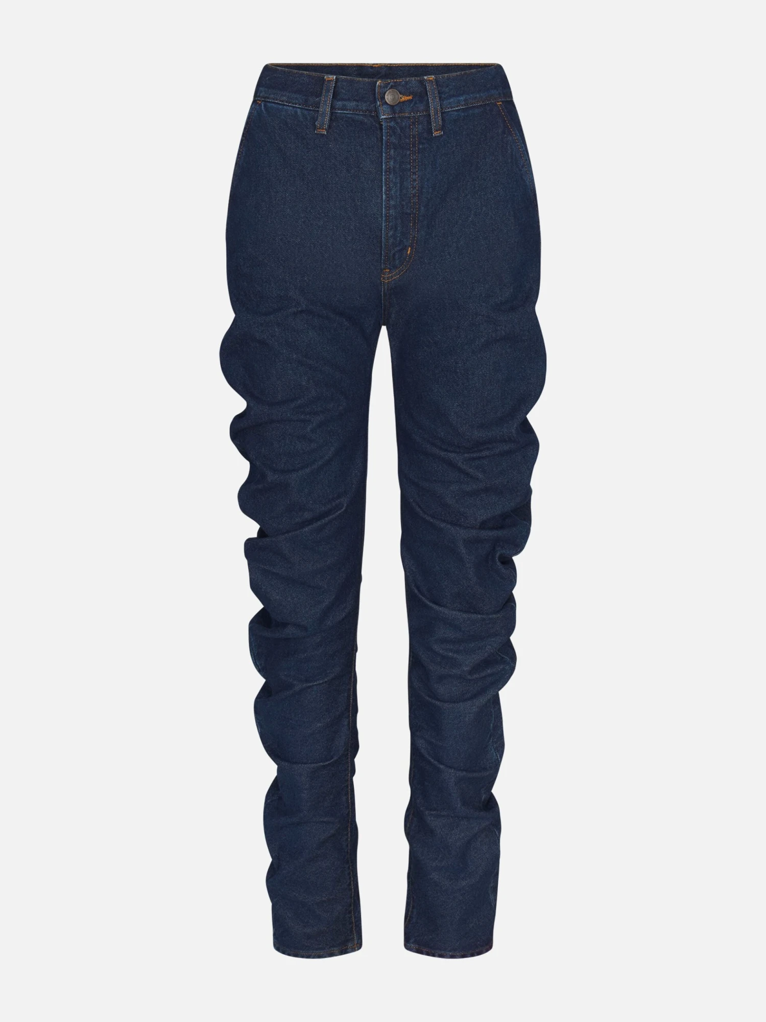 This striking jean is cut in a circular shape for a dramatically stacked outseam and sleek, clean inseam. A limited-edition style, crafted from premium, non-stretch denim in a rich indigo hue.