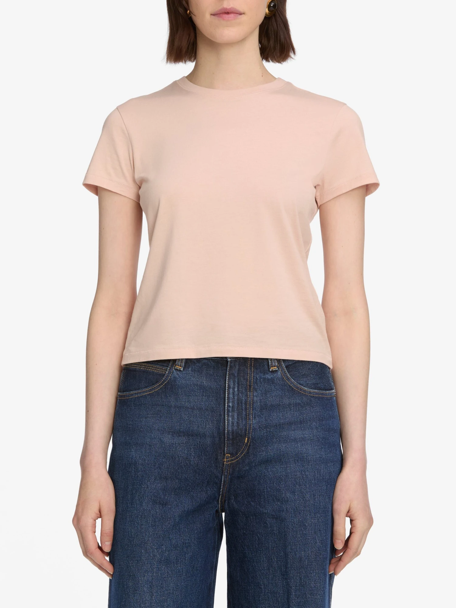 Crafted in indulgently soft and slightly sheer supima cotton, this baby tee is your go-to everyday t-shirt. Cut to a slightly shrunken fit, you can pair it with denim for a chic, fuss-free uniform.