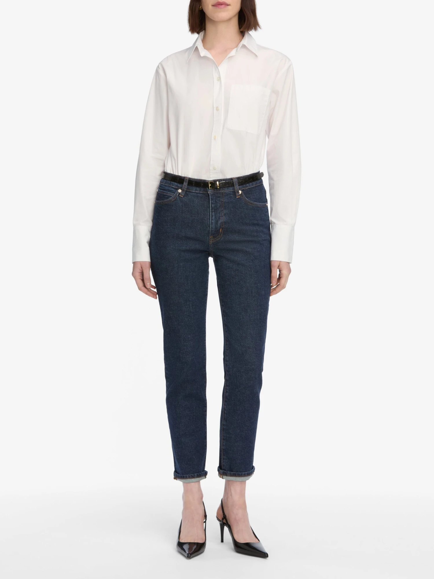 A boyfriend jean for the new millennium, this mid-rise silhouette hugs the hip and finishes into an ankle-length inseam. We love to style it with a 1” cuff, though you’re free to unroll it for a longer look. Cut in our Structured Stretch denim for a vintage look with modern comfort.