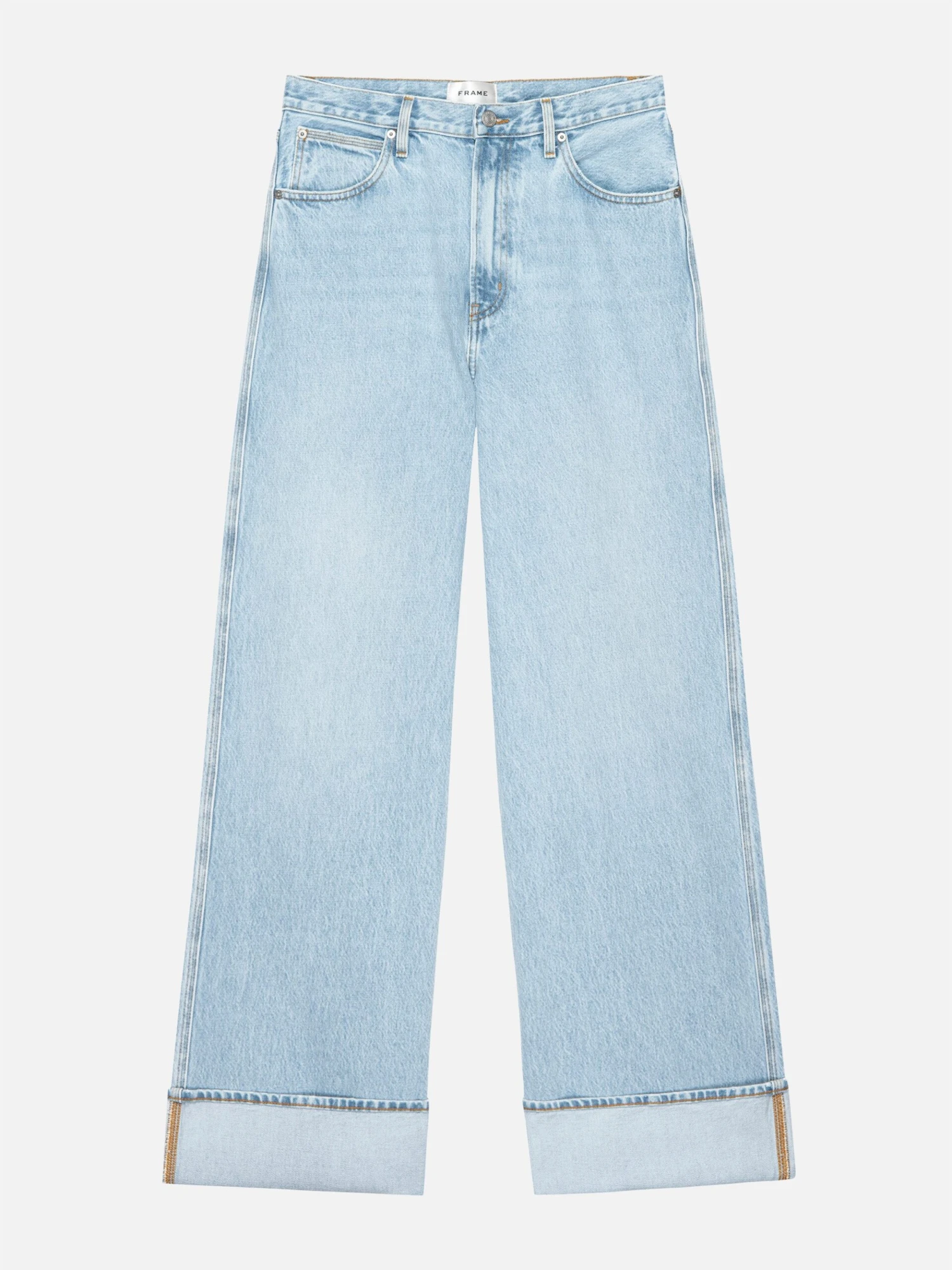 This jean extends to the floor and features a deep 4″ cuff that can be adjusted or unrolled for extra length. If in between sizes, size down.