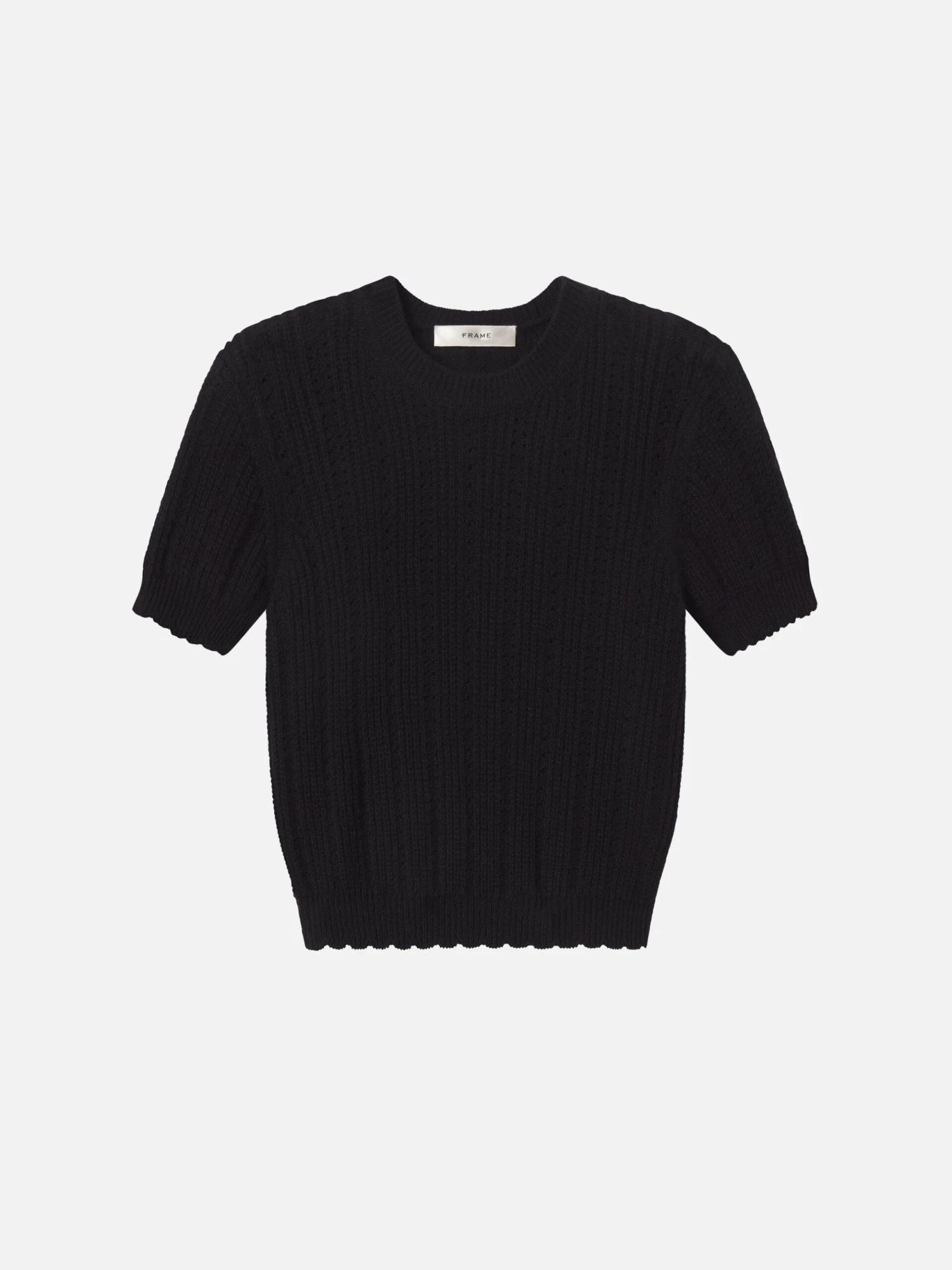 Rendered in pure cashmere, this knit is lightweight with a soft hand, cut in a slim silhouette that is perfectly cropped. The ultimate airy knit, a cool girl sweater.