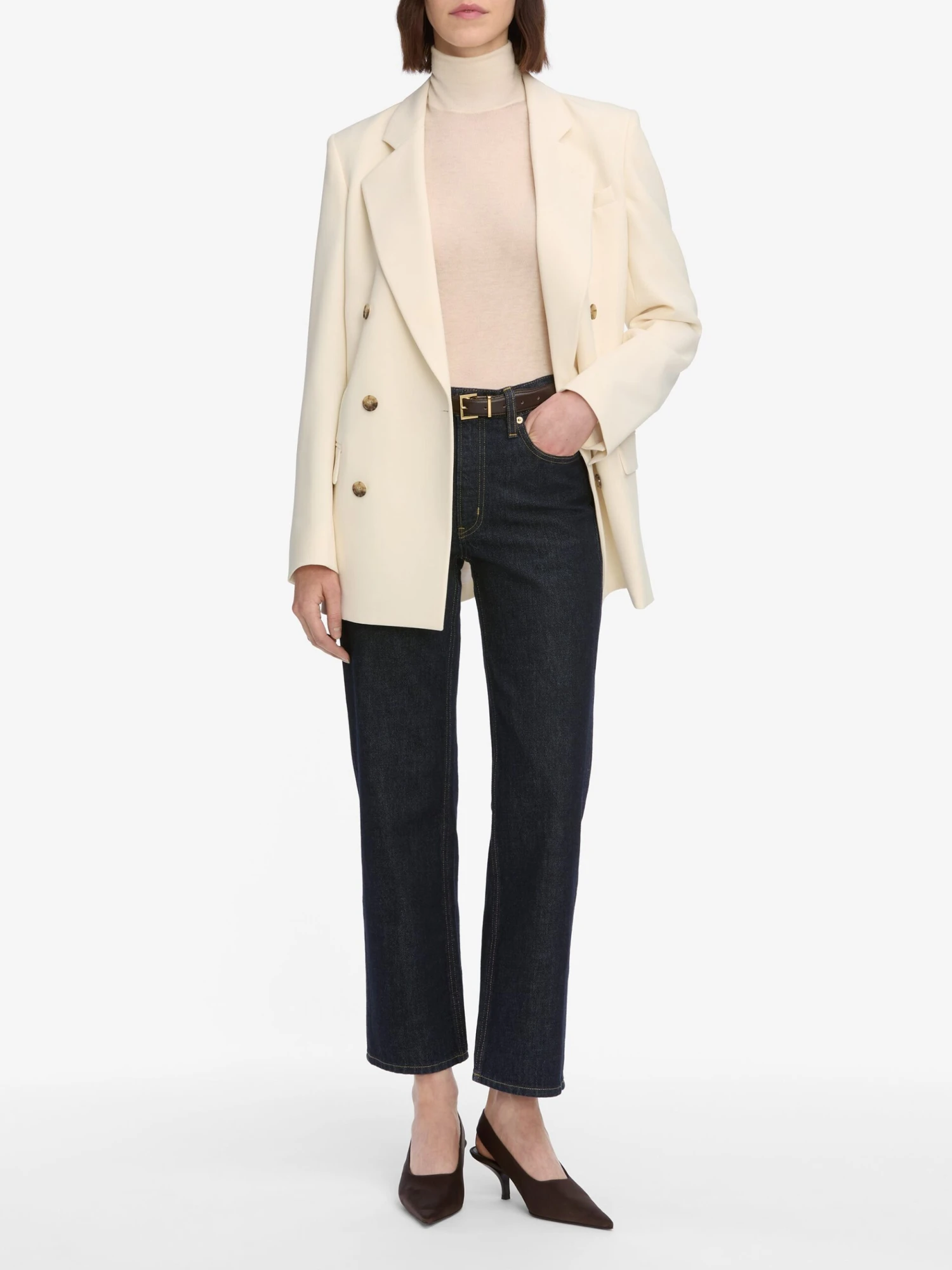 A cleaned-up rendition of a relaxed jean, this straight-leg pair “hangs” from a mid-rise waist with just enough room through the hip and thigh for a fluid fit and feel. Never slouchy, always effortless, The Hang has an easy, tailored look that strikes the perfect balance.