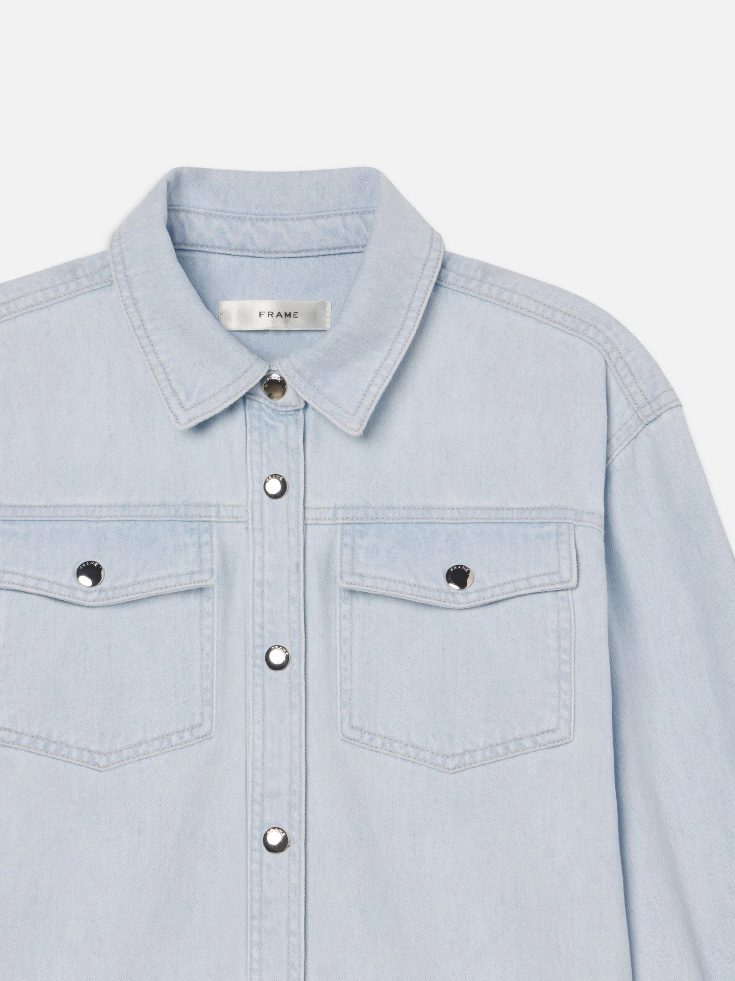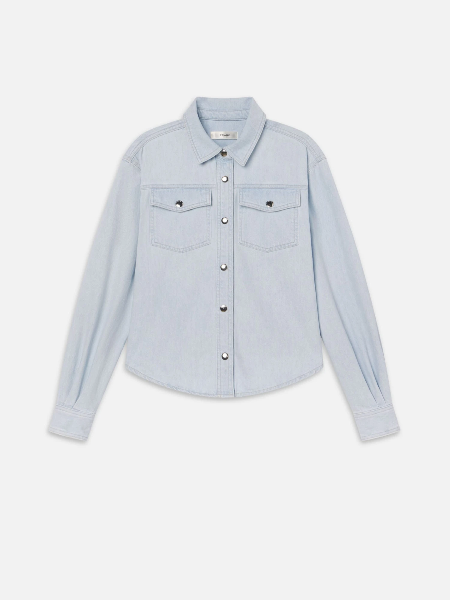 Cut from ultra-lightweight cotton and washed to the palest blue, The Mainstay nods to western styling with flap pockets and a curved hem—but lands squarely in modern territory. Pair yours with the Tapered Trouser for a tonal pairing that feels intentional and effortlessly put-together.