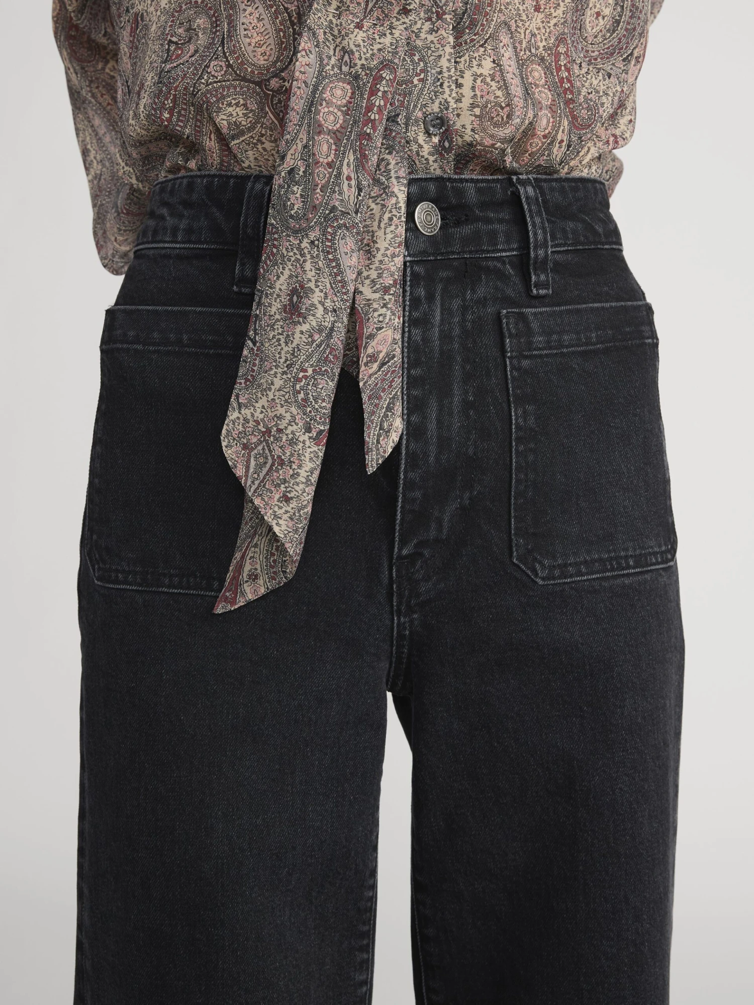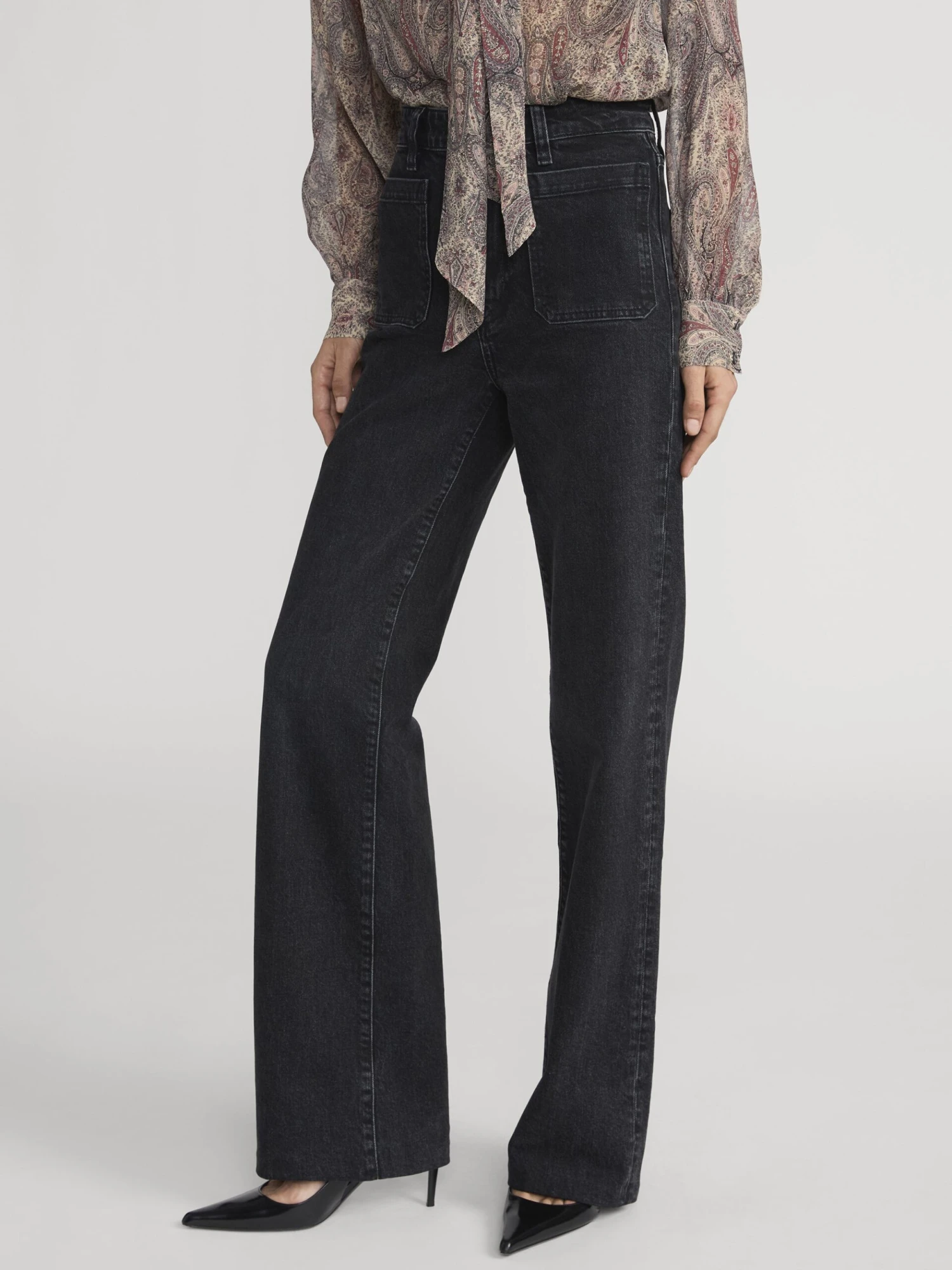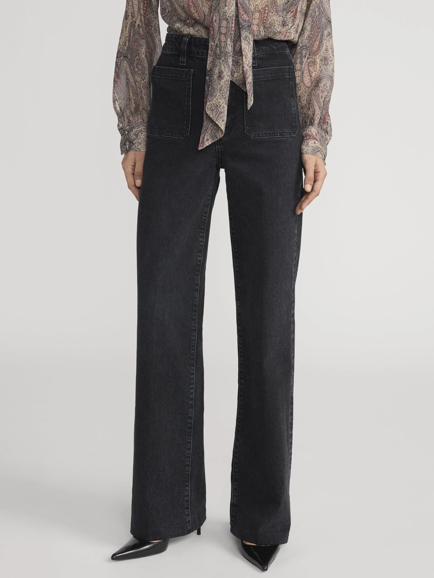A ’70s-inspired, high-rise, wide-leg jean with a sleek silhouette and front patch pockets. Crafted in denim with a hint of stretch for low-key comfort.