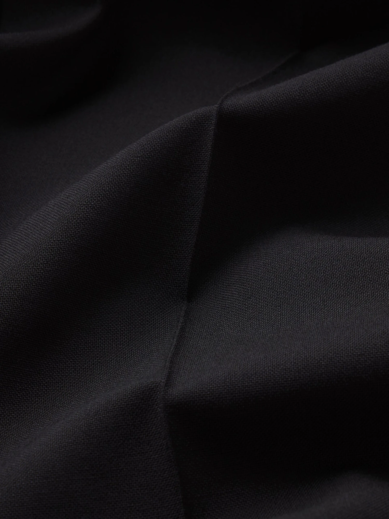 Crafted from premium 100% wool, these trousers feature a deep, midnight black finish that provides a luxurious drape and unmatched breathability. The clean-front design and sharp crease offer a streamlined silhouette that balances traditional tailoring with modern aesthetics.