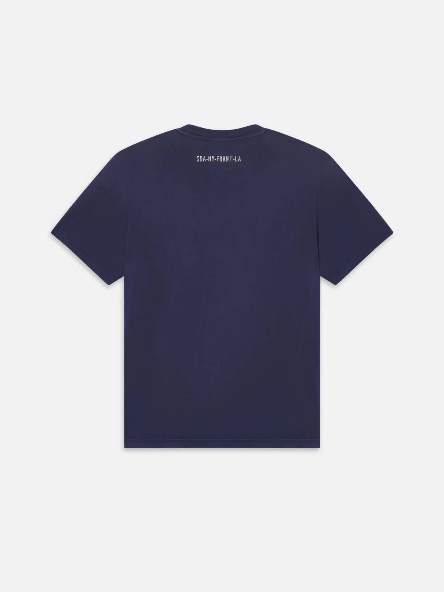 This shirt features a deep dark navy base contrasted by a weathered ‘THE SOCIETY ARCHIVE NYC’ print on the chest, providing a refined vintage look that pairs perfectly with denim or chinos.