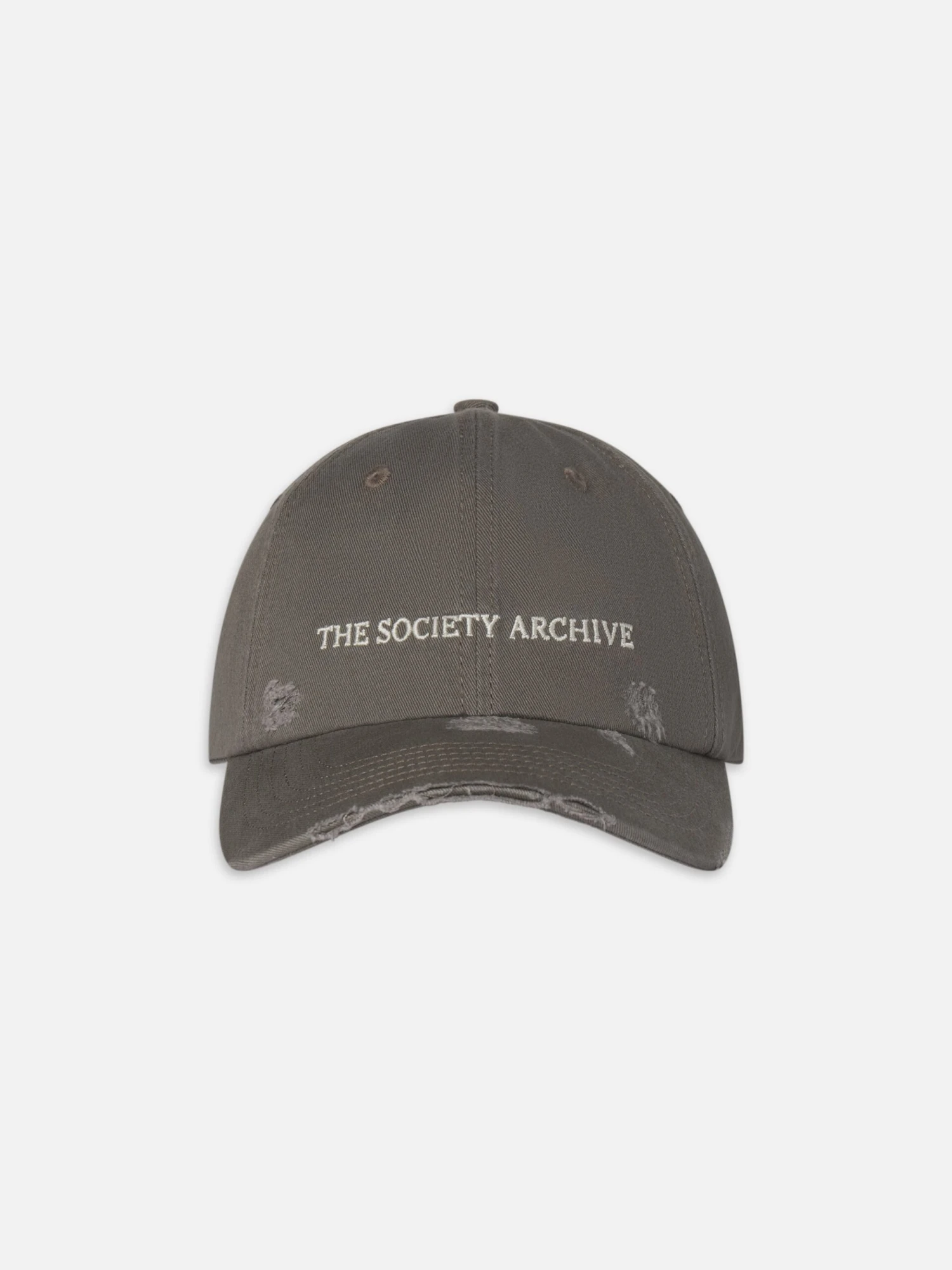 This cap features a rich Vintage Green colorway across the entire crown and visor, crafted from premium soft distressed cotton for an authentic, aged texture. The front is meticulously embroidered with “THE SOCIETY ARCHIVE” wordmark in a crisp, contrasting white, providing a clean yet vintage collegiate look.