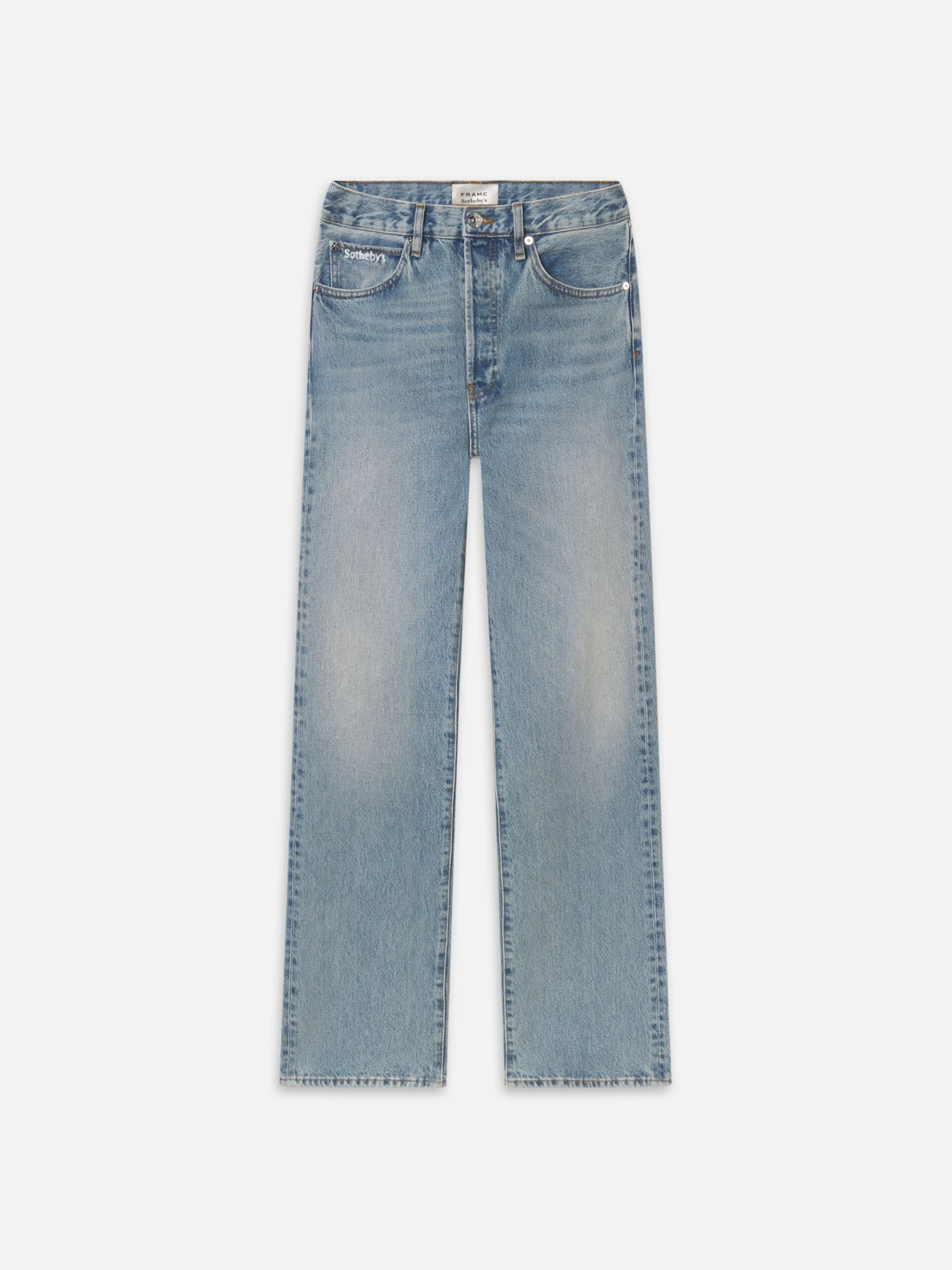 A showstopping addition to your rigid denim rotation, this classic straight-leg jean comes in a blue wash with a high-rise waist and full-length inseam. Complete with a classic summary-fly closure and Sotheby’s embroidery on the coin pocket.