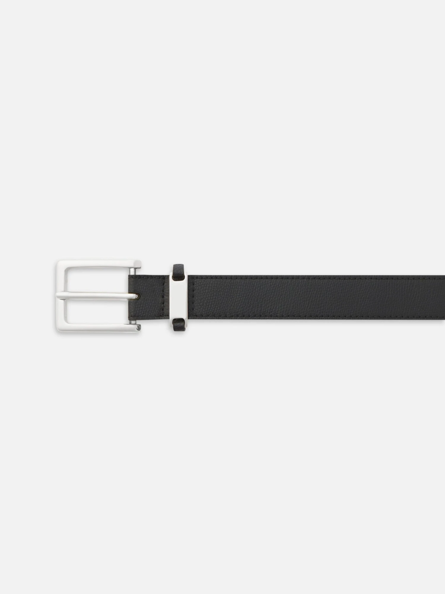 Crafted from black leather with a squared silver buckle, this belt adds a refined finish to denim, trousers, or crisp shirting. It’s the foundational piece with clean edges and a soft, smooth feel.