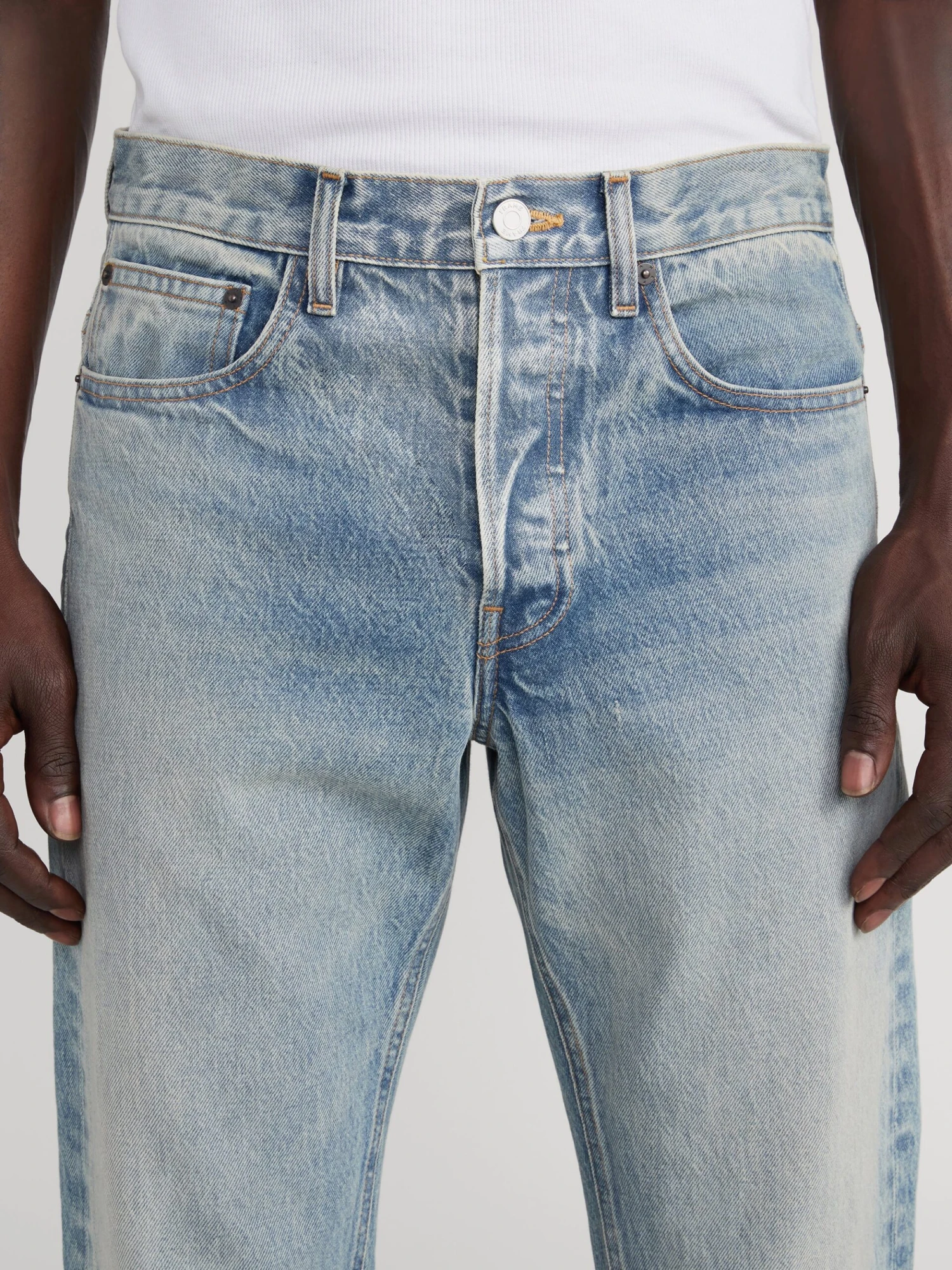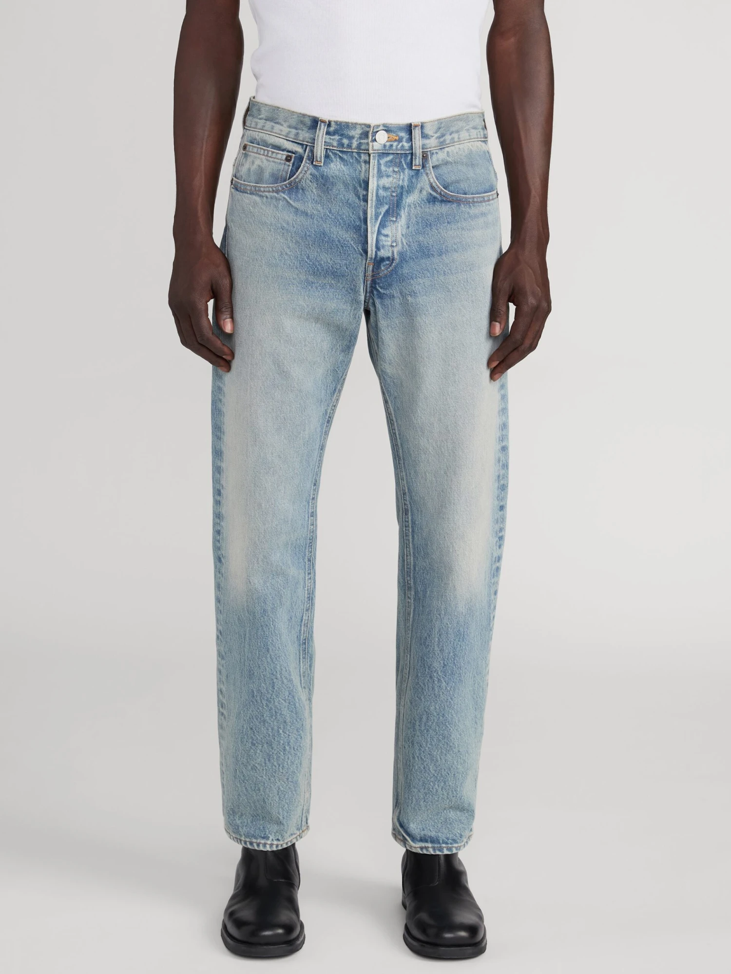 A FRAME favorite, designed with a mid-rise waist, clean, straight leg and summary fly. Crafted from sustainable non-stretch denim for a classic look and feel.