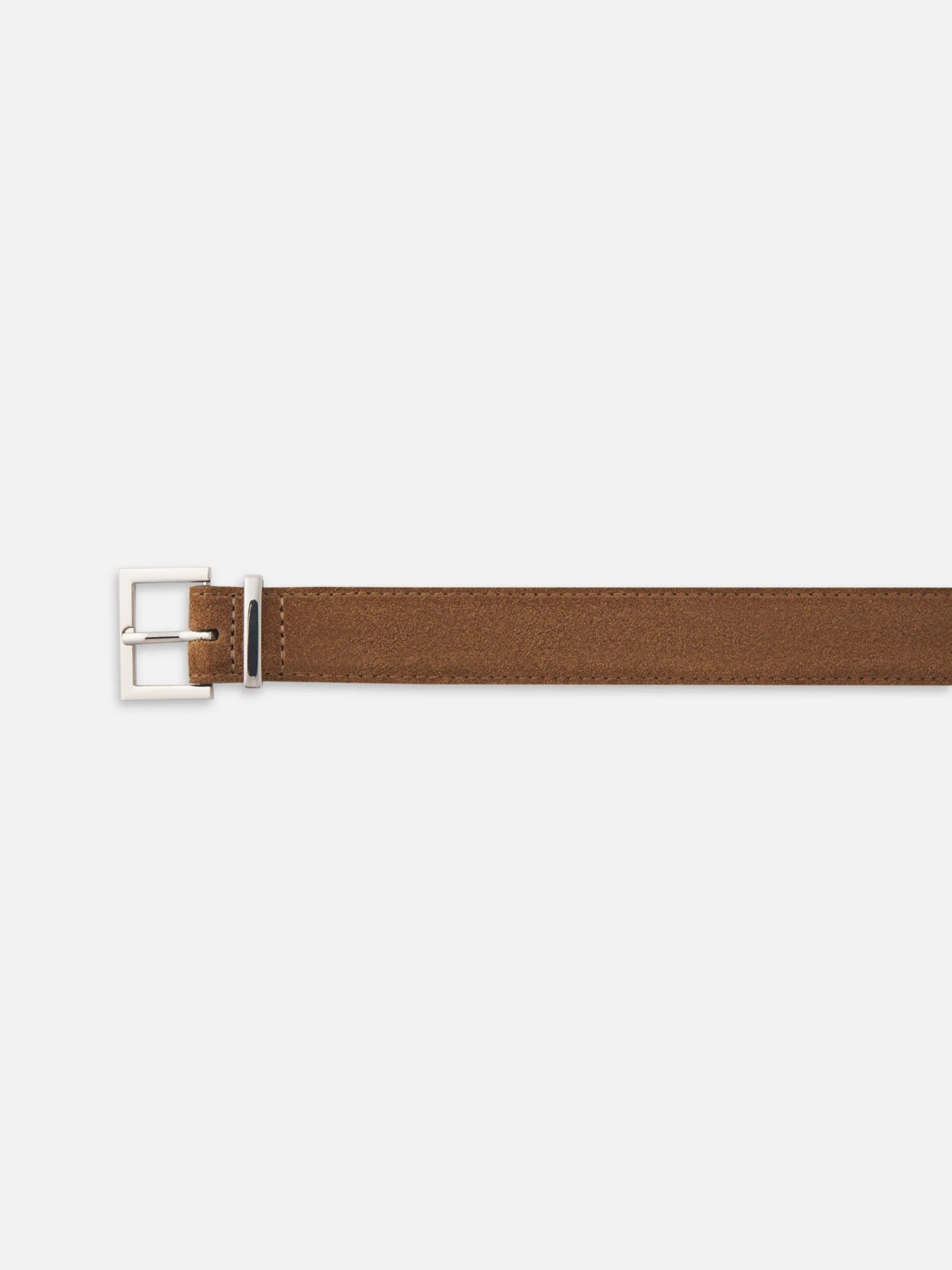 Crafted from camel suede with a square silver buckle, this belt adds a refined finish to denim, trousers, or crisp shirting. 100% leather, with clean edges and a soft, smooth feel.