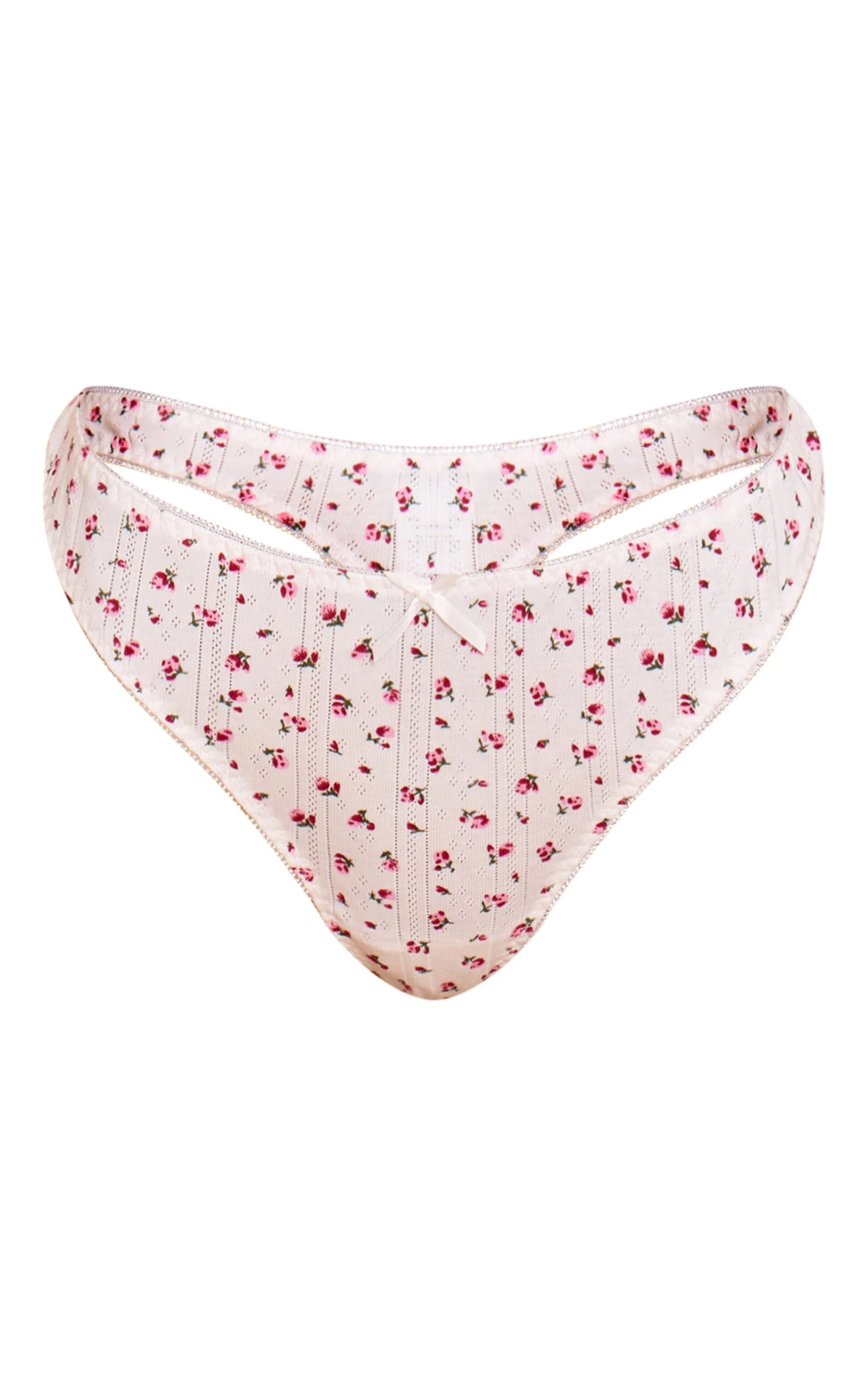 Keep it minimal in the white ditsy pointelle thong. Made from a white pointelle fabric with a ditsy floral print, it offers a soft and feminine touch to your lingerie drawer. Wear with the matching bralette and your favorite gold accessories for a sweet coordinated look.