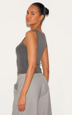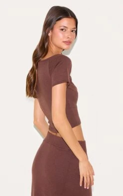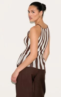 PrettyLittleThing Chocolate & White Stripe Peplum Cami Top – Brushed Knit Spaghetti Strap Day Top
